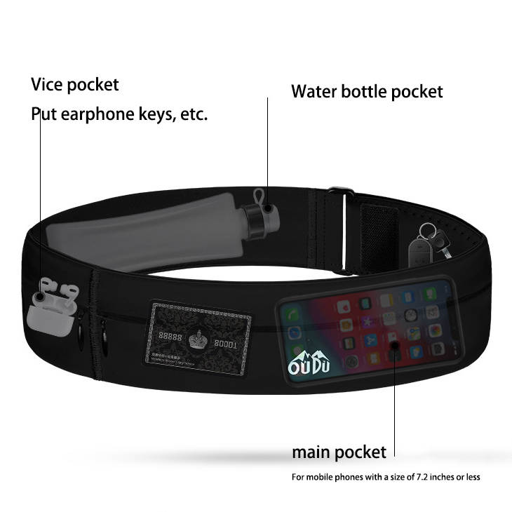 Designed to be your ultimate running companion. A one-size-fits-all belt securely holds your keys, water bottle, large phone, and credit cards, ensuring everything you need is within reach.